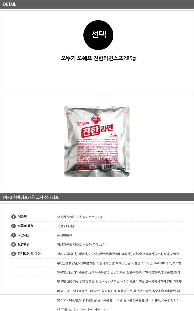 - home > º£½ºÆ® »óǰÀü > ¿À¶Ñ±â ¿À½¦ÇÁ ÁøÇѶó¸é½ºÇÁ 285g